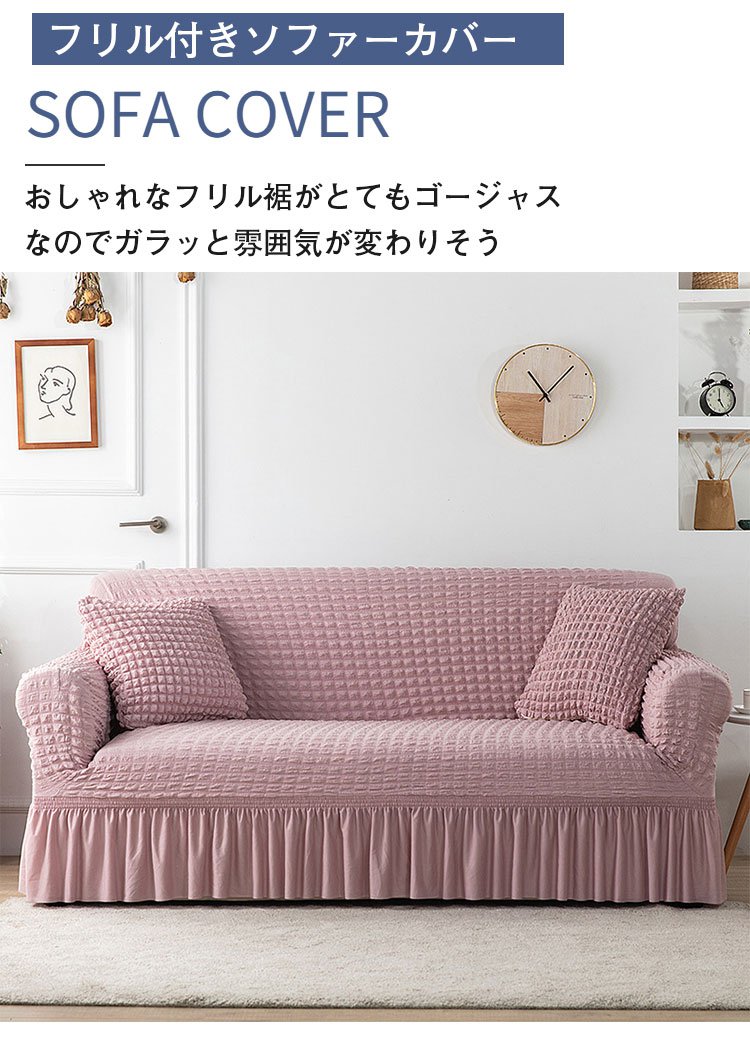 【フリル付きソファーカバー】丈夫でペットの爪による傷や汚れや水などからソファを守れるソファーカバー
